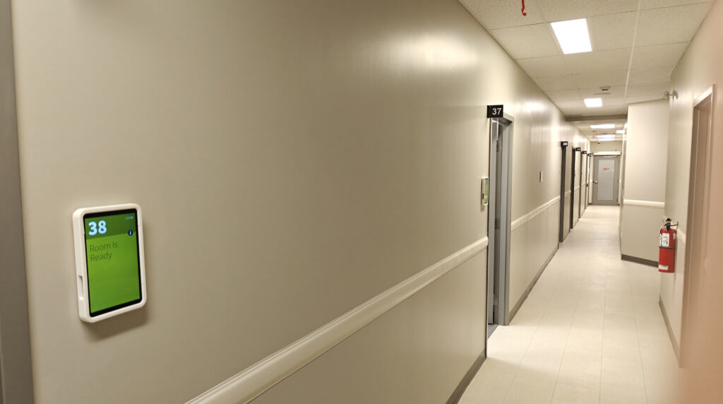 As part of this implementation, 42 CHIME Room Tablets have been installed throughout the facility. These tablets empower clinicians to efficiently manage their day by enabling real-time check-in and check-out of appointments, on-the-fly task assignment, and seamless updates to room status. This streamlined approach helps reduce administrative burden and improves overall clinic efficiency.