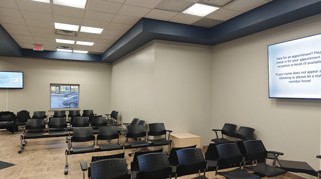 Additionally, two Waiting Room Displays have been installed to improve communication and transparency. These displays automatically predict and present wait times, direct patients to their assigned rooms using clear visual cues, and provide audible guidance to assist with navigation.